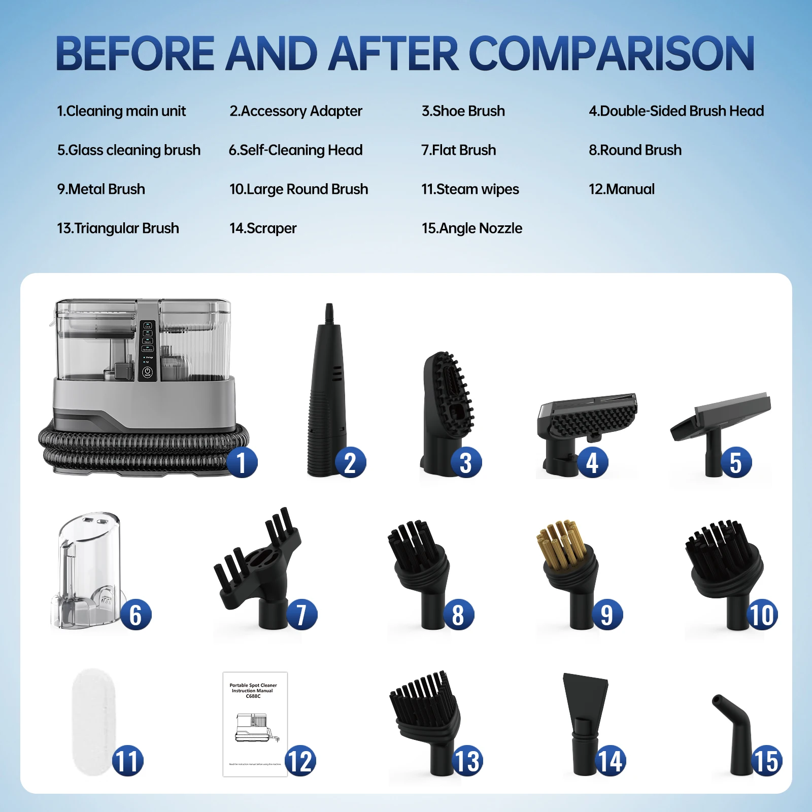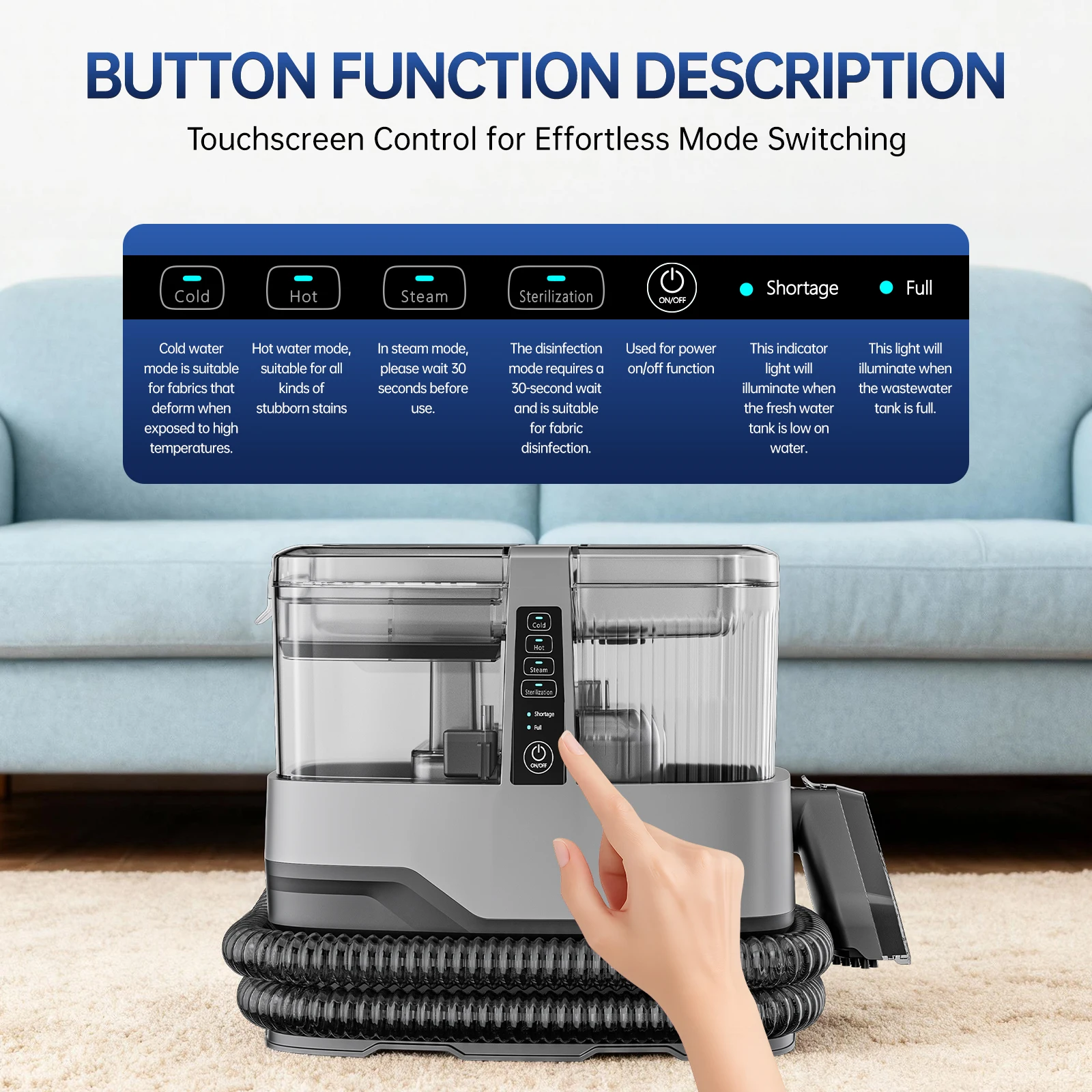 OMESER 1800W Machine de nettoyage de tapis à vapeur 13 en 1 17KPa aspiration plusieurs buses pulvérisation de points lavage pour tissus d'ameublement voiture pour animaux de compagnie maison - TopDealBox