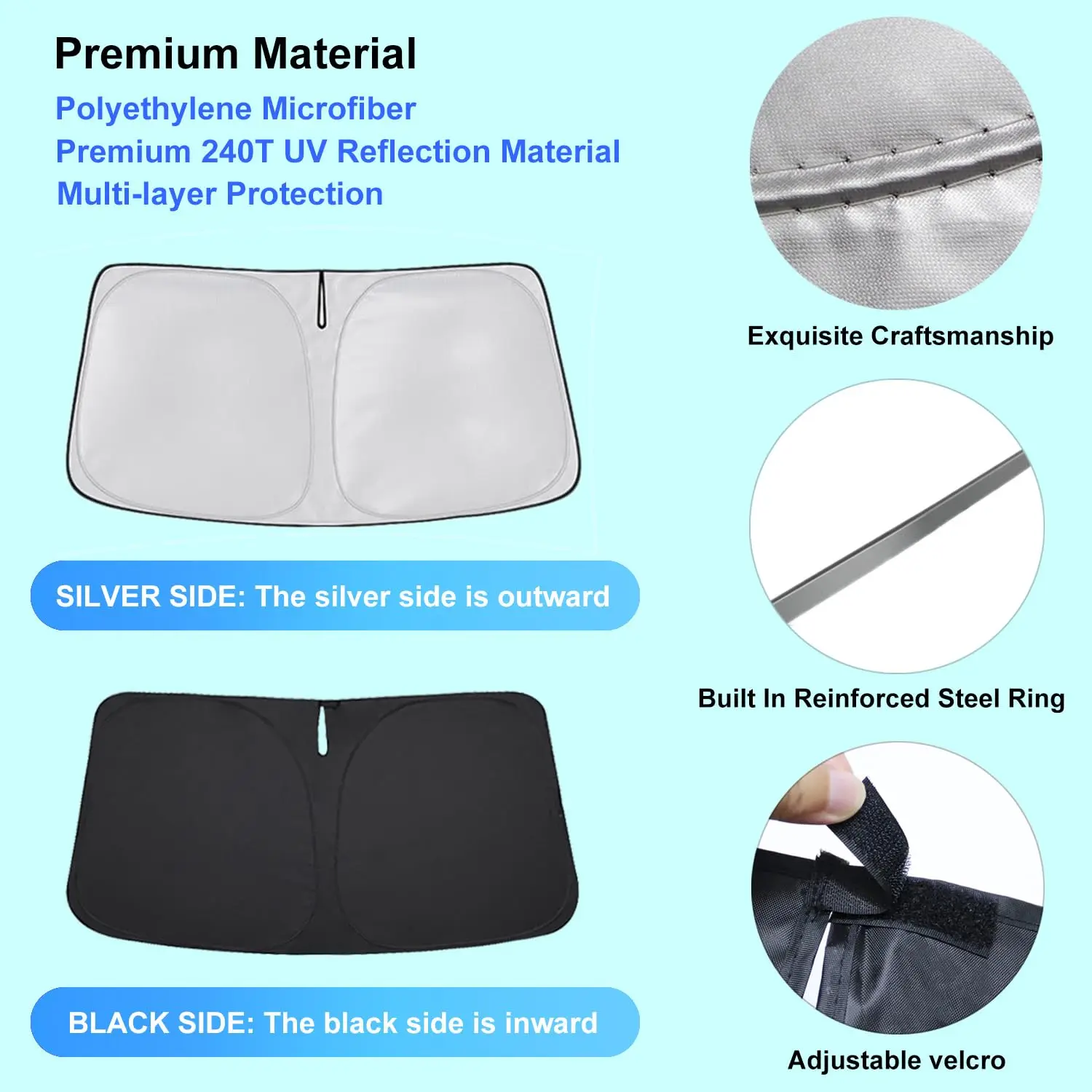 Pare-soleil de voiture à réflexion UV, pare-brise avant, Parasol pliable, Protection d'été, isolation thermique pour siège de voiture - TopDealBox