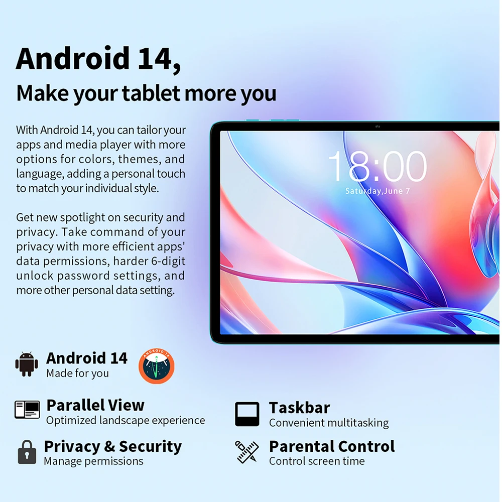 ♡Aperçu rapideTECLAST-Tablette Air T40, 10.4 ", 2K FHD, 2000x1200, Max 16 Go de RAM, 256 Go, Dean UNISOC T616, 8 cœurs, Android 13, 7200mAh, 4G, Permanence, GPS, 18W, PD, Charge rapide112.93 EUREUR 119.21Populaire★★★★★★4.6