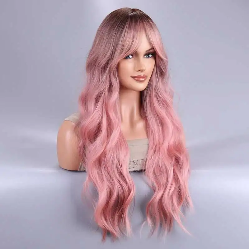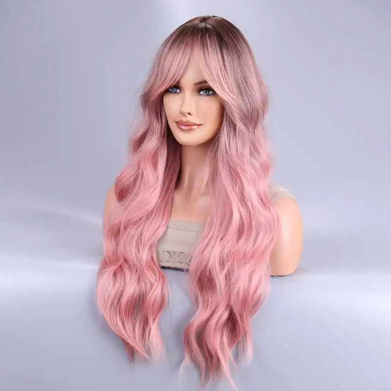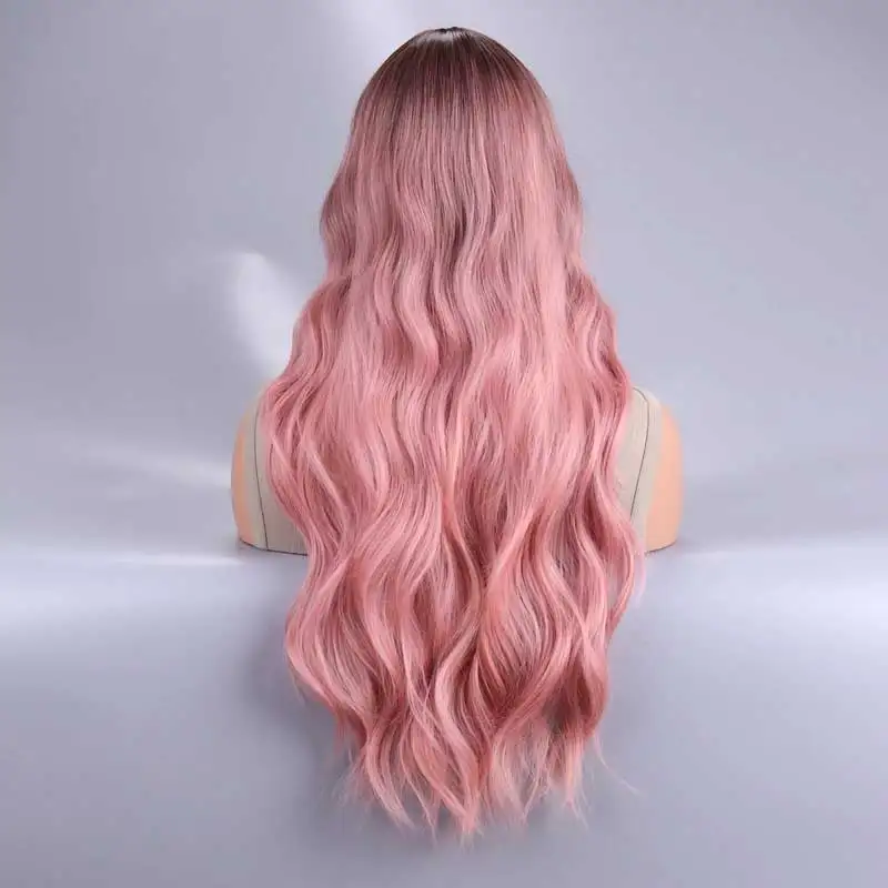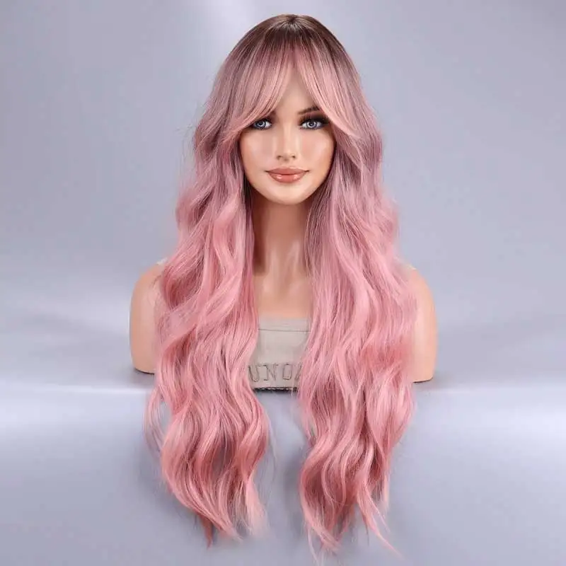 Perruques de Cosplay synthétiques longues ondulées ombrées noires et roses, perruques synthétiques résistantes à la chaleur avec raie centrale, perruques Lolita naturelles pour femmes - TopDealBox