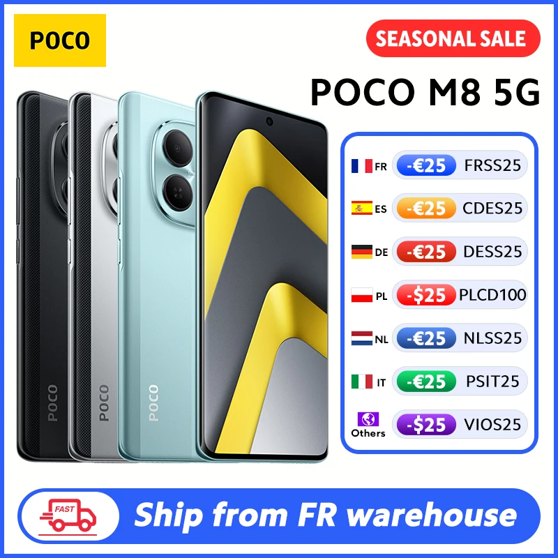 【Première mondiale】POCO M8 5G Téléphone portable Version mondiale Snapdragon ® Appareil photo 6 Gen 3 50MP, écran AMOLED 6,77 pouces 120 Hz, 5520 mAh, 45 W, NFC - TopDealBox