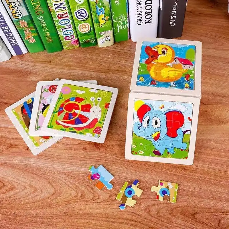 Puzzle en bois à motif d'animaux de dessin animé pour enfants, jouet pour l'éducation de la petite enfance, 3 à 7 ans, 3 pièces - TopDealBox
