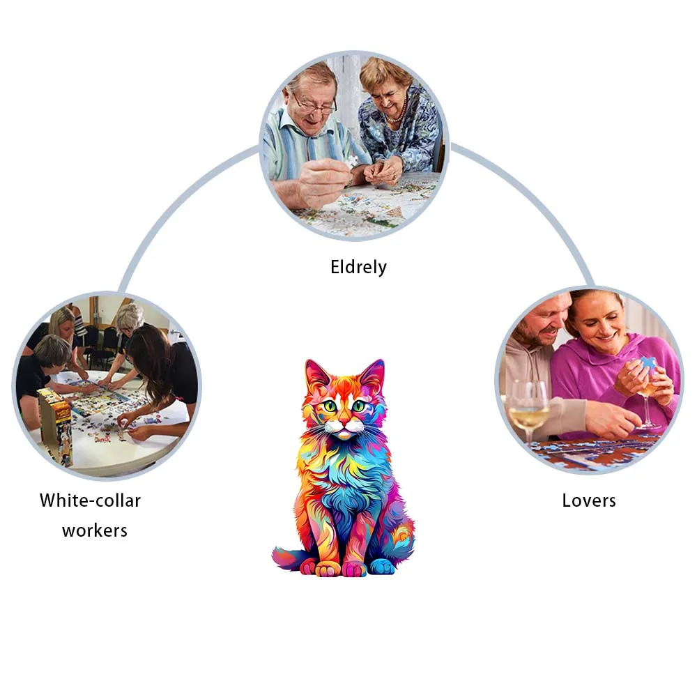 Puzzle en bois couleur chat boîte-cadeau beau cadeau forme irrégulière puzzle cadeau de noël adulte réduction du stress interaction familiale - TopDealBox