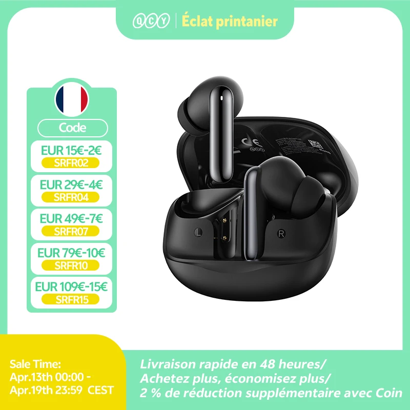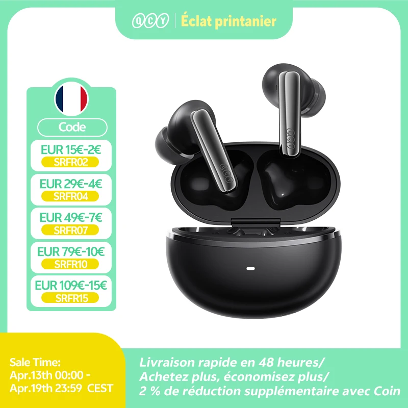 ♡Aperçu rapideQCY-Écouteurs sans fil AilyBuds Pro+ ANC, HT10, Hi-Res Audio, AC Sat, Bluetooth 5.3, 6 micros, AI, HD, appel, connexion multipoint31.19 EUREUR 33.44Populaire★★★★★★4.7