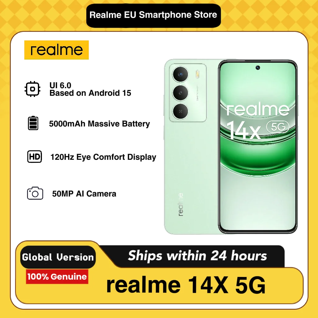 realme 14X 5G AI Phone 8GB+256GB LTE, Version Globale, Android 15, Processeur Mediatek Dimensity 6300, Batterie Grande Capacité 5000mAh - TopDealBox