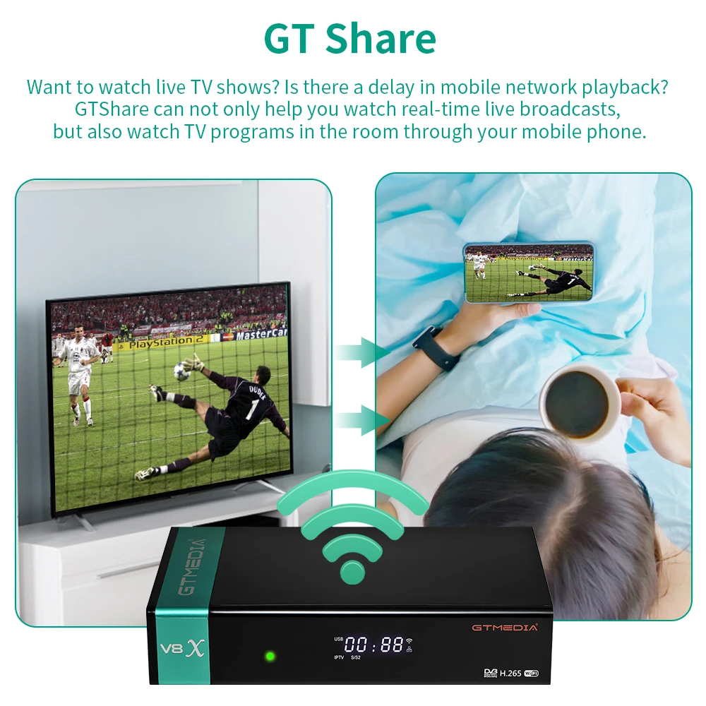 Récepteur Satellite GTMEDIA V8X DVB-S/S2/S2X,HEVC H.265 WIFI 2.4G intégré avec lecteur de carte CA Support STB M3U/CCAM/IKS/MARS/ECAM - TopDealBox