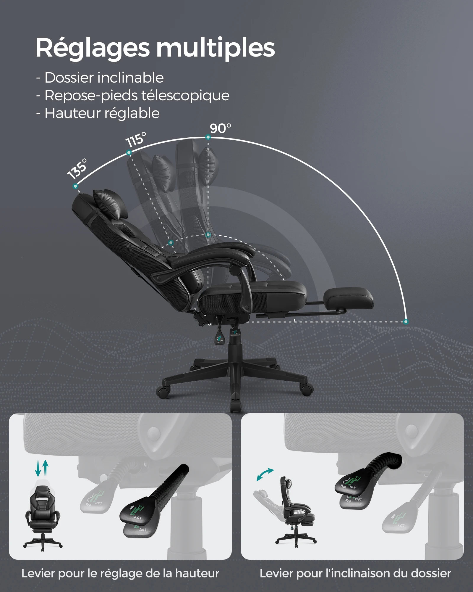 ♡Aperçu rapideJHK ergonomique inclinable à dossier haut maille salon chaise de jeu à bascule bureau d'ordinateur pivotant roulant soutien lombaire oreiller83.99 EUREUR 105.37Populaire★★★★★★4.9
