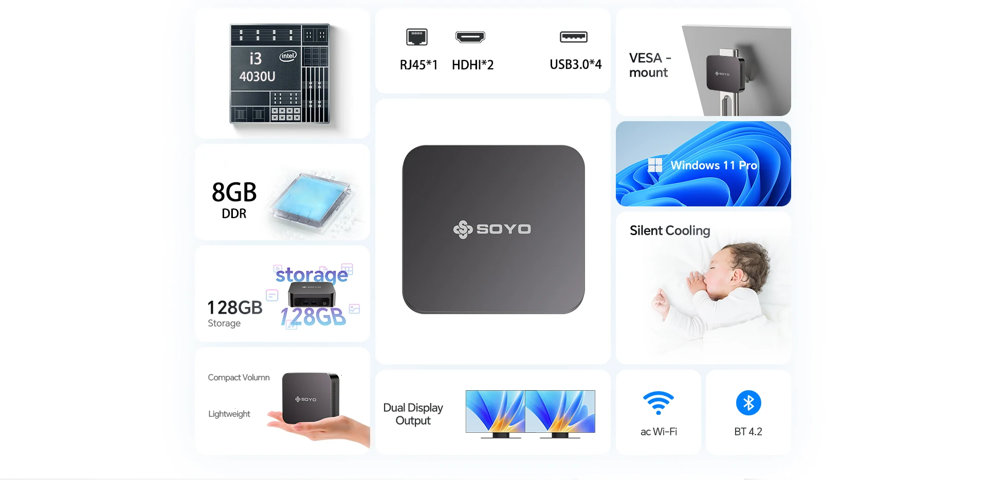 ♡Aperçu rapideMini PC SOYO Y5 AIR, processeur Intel i5-4250U, 8 Go de RAM, 128 Go de SSD, mini ordinateur de bureau, Bluetooth/WIFI/TYPE-C/HD*2/silencieux, utilisation domestique121.67 EUREUR 512.26Populaire★★★★★5.0