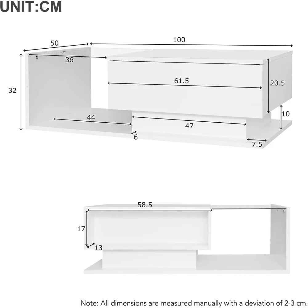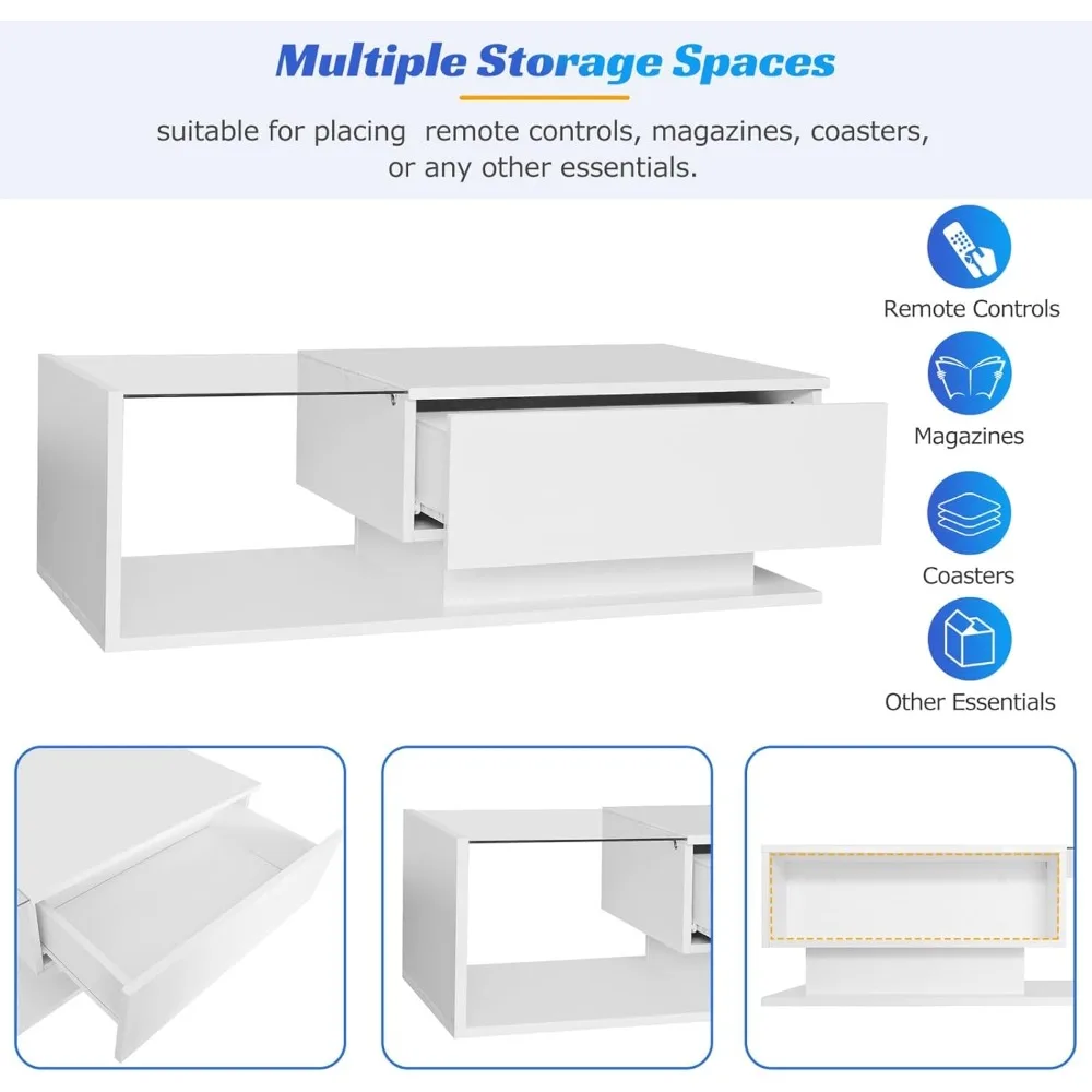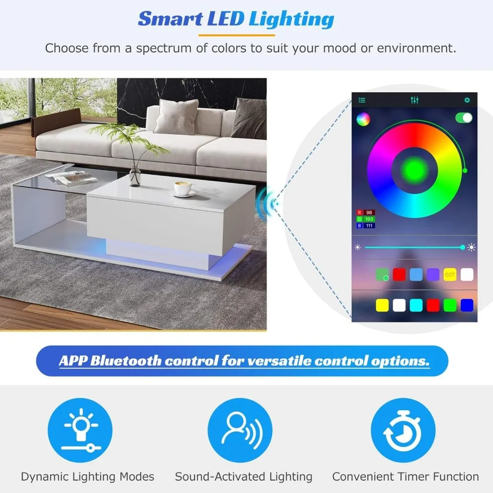 ♡Aperçu rapidetable basse rectangulaire moderne avec 4 tiroirs et plateau relevable, meuble de salon coffre avec lumières LED, blanc164.69 EUREUR 1324.27Populaire★★★★★5.0