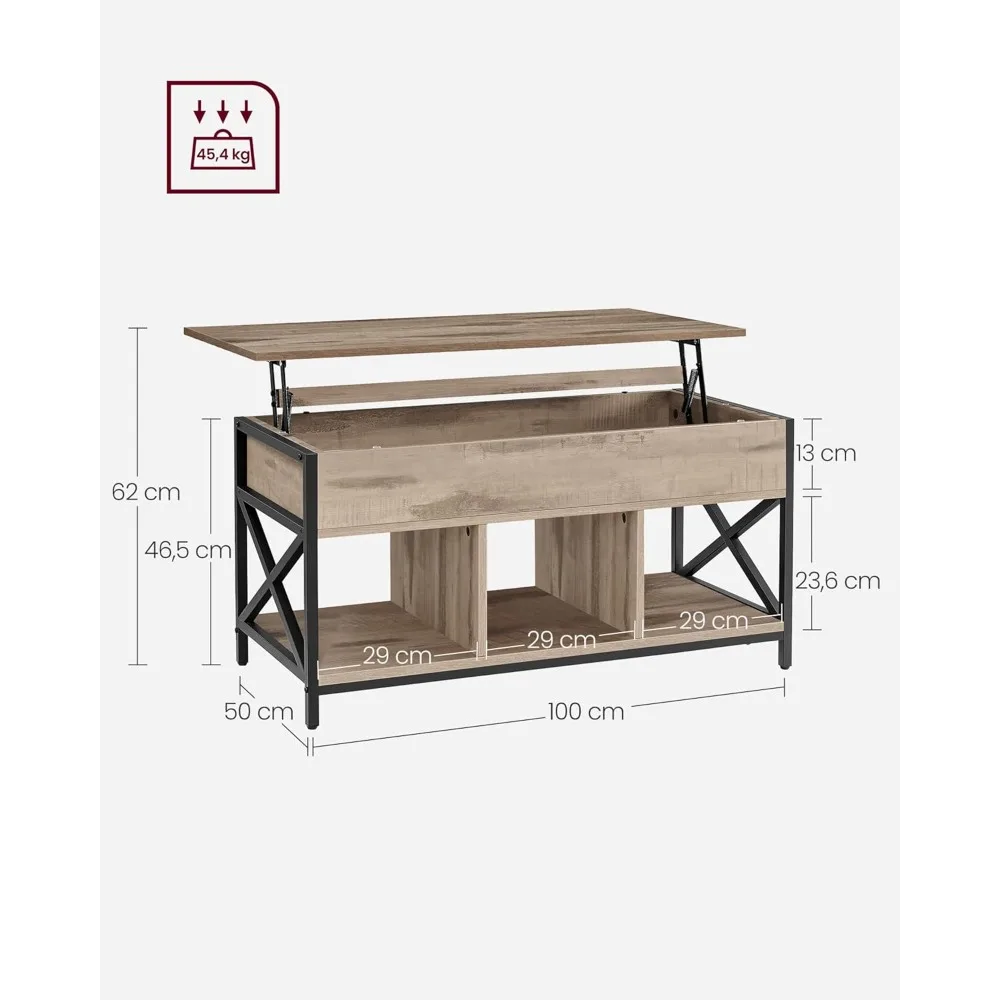 ♡Aperçu rapideVASAGLE Table Basse, Table de Salon avec Plateau Relevable, avec Rangement Ouvert et Compartiment Caché, Barres en Forme de X, 60 x 100 x (48-62) cm58.39 EUREUR 66.02Populaire★★★★★★4.8