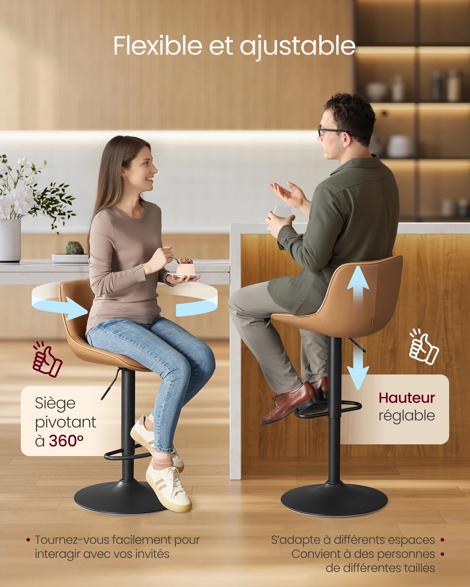 ♡Aperçu rapideVASAGLE EKHO Collection - Tabouret de Bar Pivotant à 360°, Hauteur Réglable, avec Rangement, PU avec Coutures, Style Moderne Mi-siècle, pour Cuisine, Bar, Montage Facile61.80 EURPopulaire