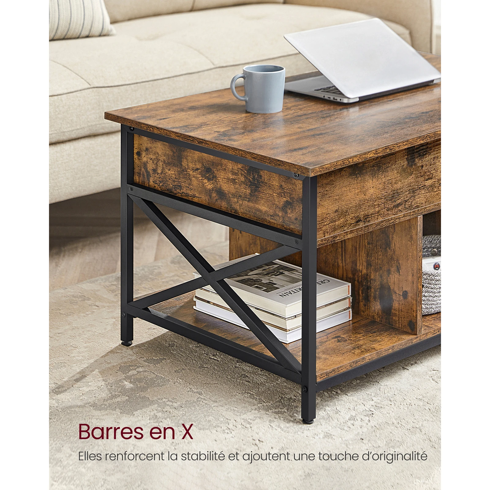 ♡Aperçu rapideVASAGLE Table Basse, Table de Salon avec Plateau Relevable, avec Rangement Ouvert et Compartiment Caché, Barres en Forme de X, 60 x 100 x (48-62) cm58.39 EUREUR 66.02Populaire★★★★★★4.8