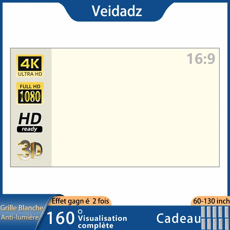 VEIDADZ écran de projecteur grille blanche Anti-lumière 16:9 écran de Projection 60 72 84 100 120 130 pouces tissu réfléchissant pour Home cinéma intérieur - TopDealBox