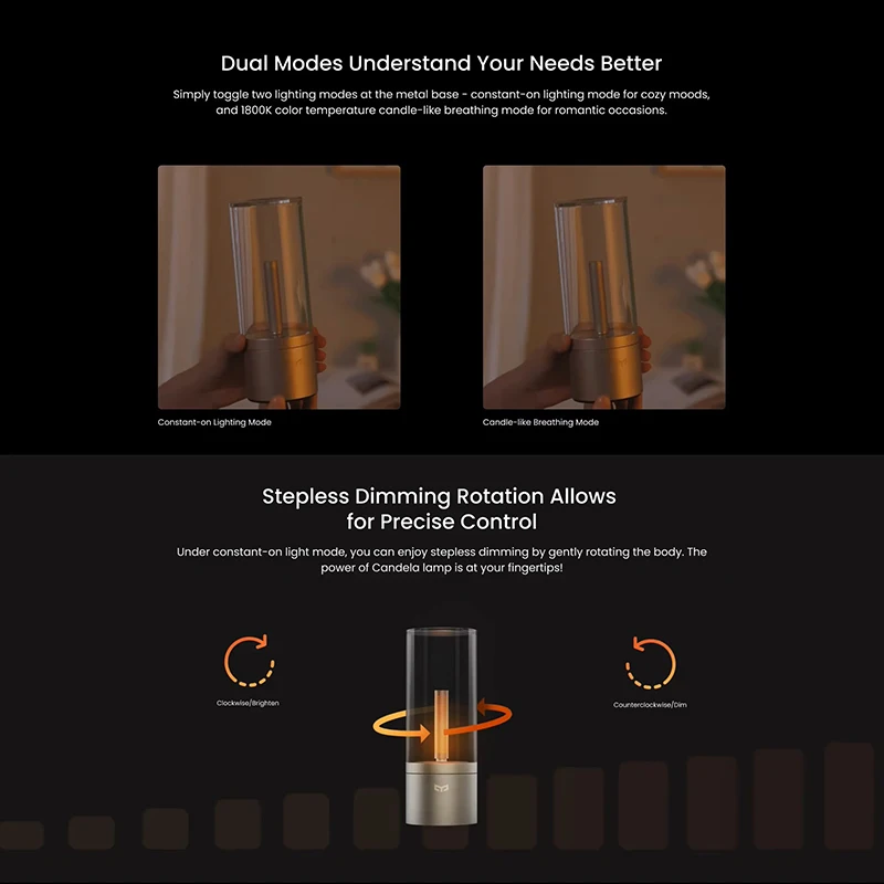 Yeelight lampe Candela rechargeable Led veilleuse atmosphère lumière gradation continue lampe de chevet pour chambre - TopDealBox