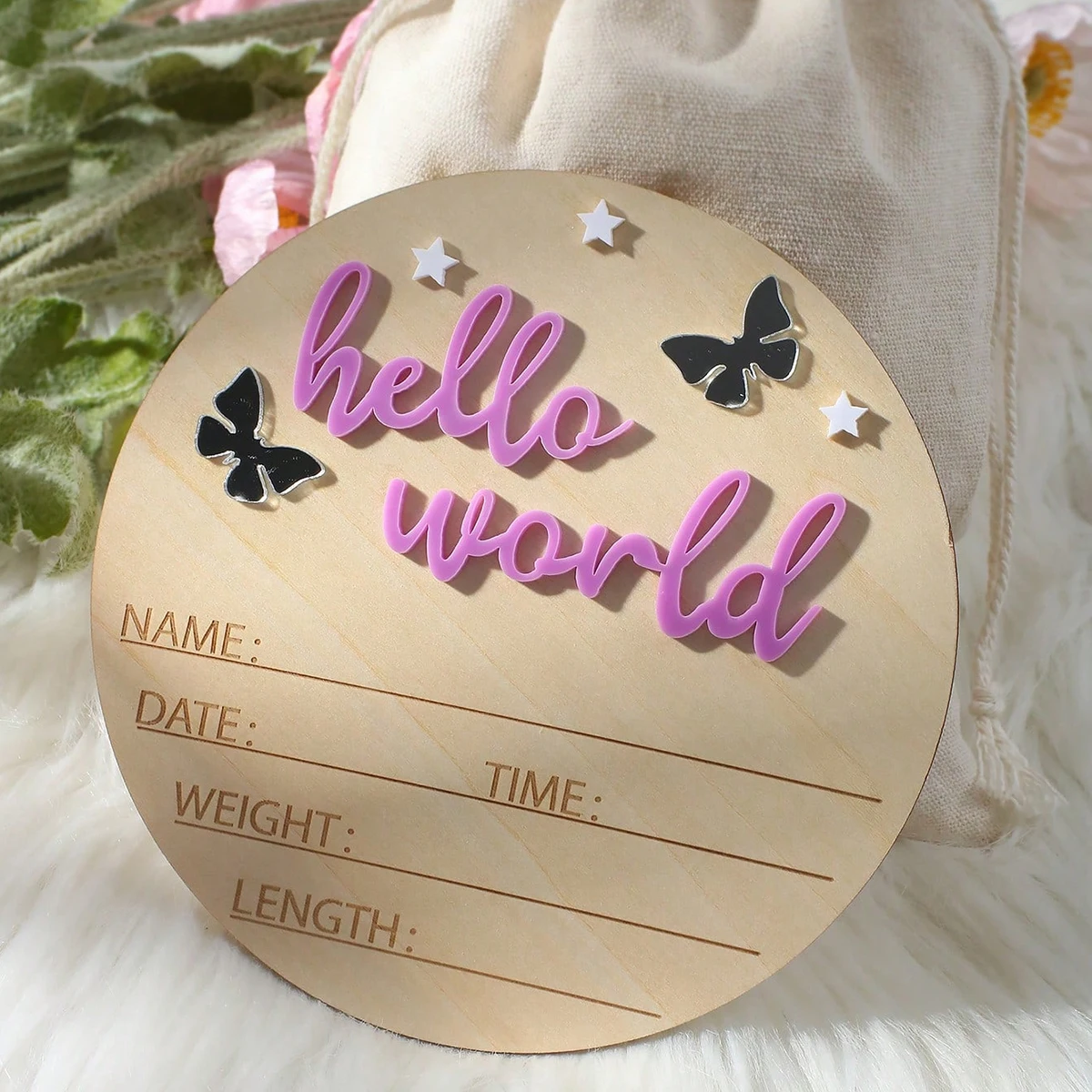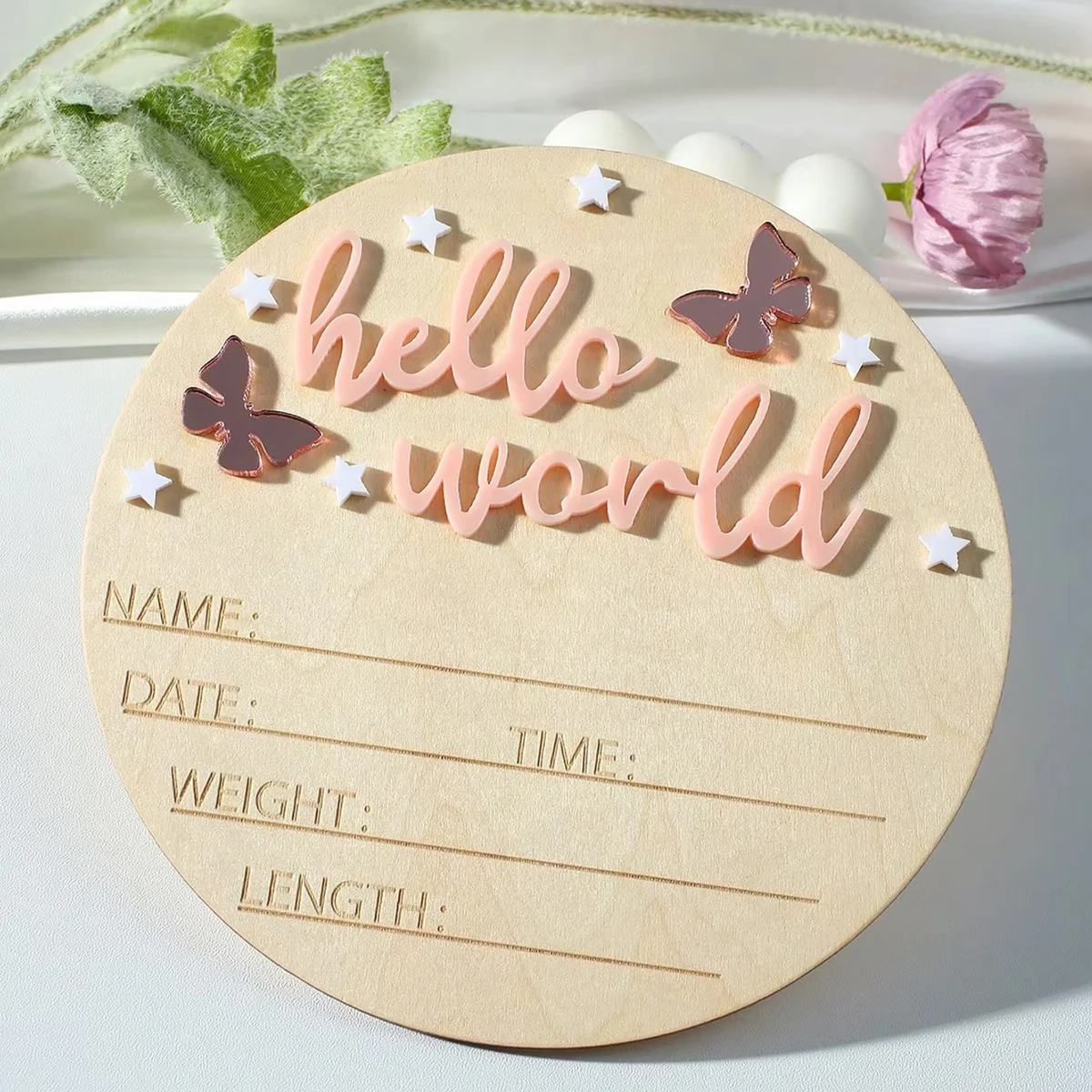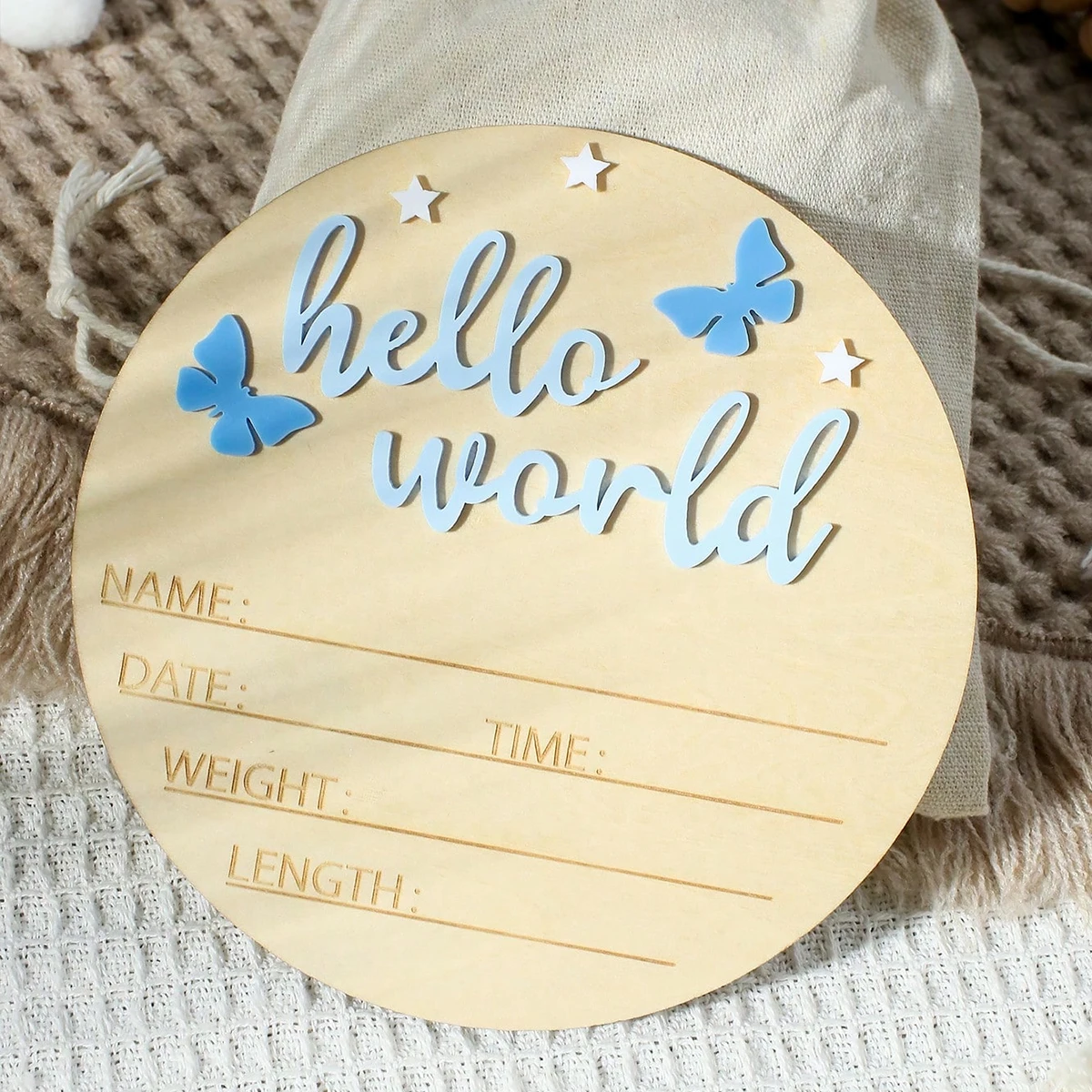 Ylsteed Hello World – panneau en bois pour nouveau-né, signe d'annonce de bébé, papillons étoiles, accessoires de souvenirs pour nouveau-né, idées de séance photo pour bébé - TopDealBox