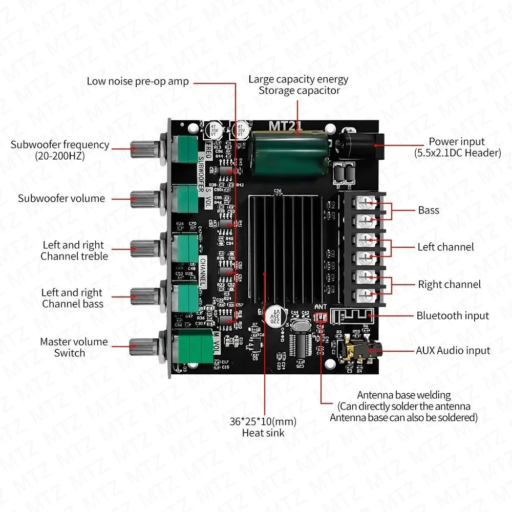 ZK-MT21 100W + 2*50W 2.1 canaux amplificateur de puissance Audio numérique Module caisson de basses AUX dent bleue 12/24V amplificateur stéréo HiFi pour haut-parleur - TopDealBox